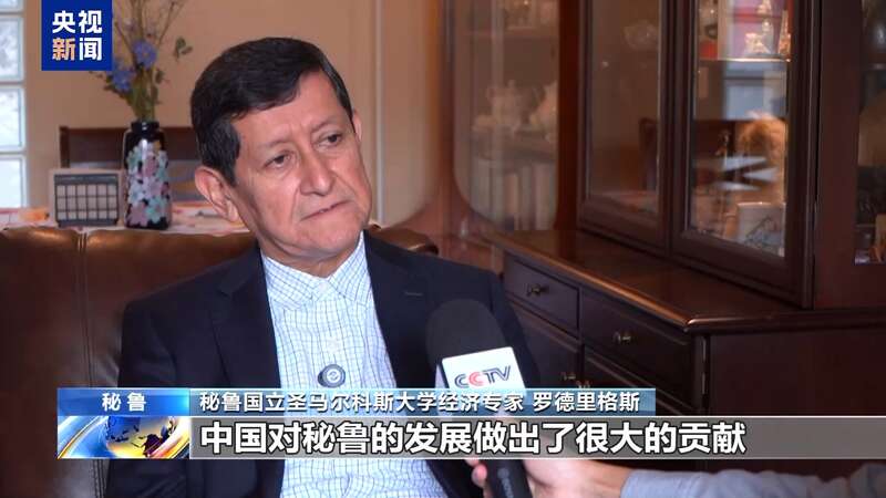 秘鲁国立圣马尔科斯大学经济专家 罗德里格斯:中国对秘鲁的发展做出了很大的贡献。首先中国从我们这里购买产品,其次中国向我们提供了很多产品,有价格实惠的手机、汽车,提高了许多人的生活水平。