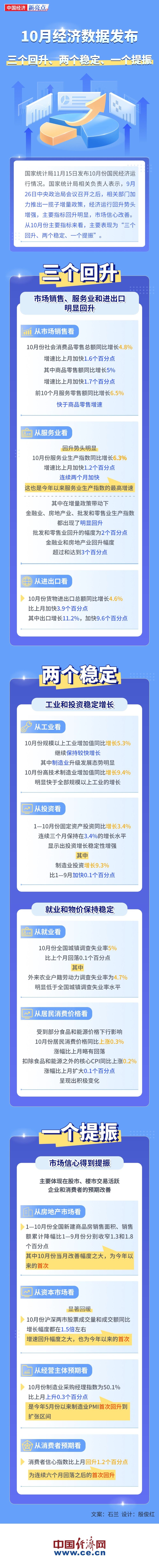 10月经济数据发布:三个回升、两个稳定、一个提振