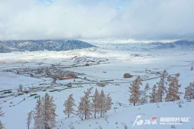 11月7日,俯瞰阿勒泰市切木尔切克镇拜格托别村雪景。刘是何 摄