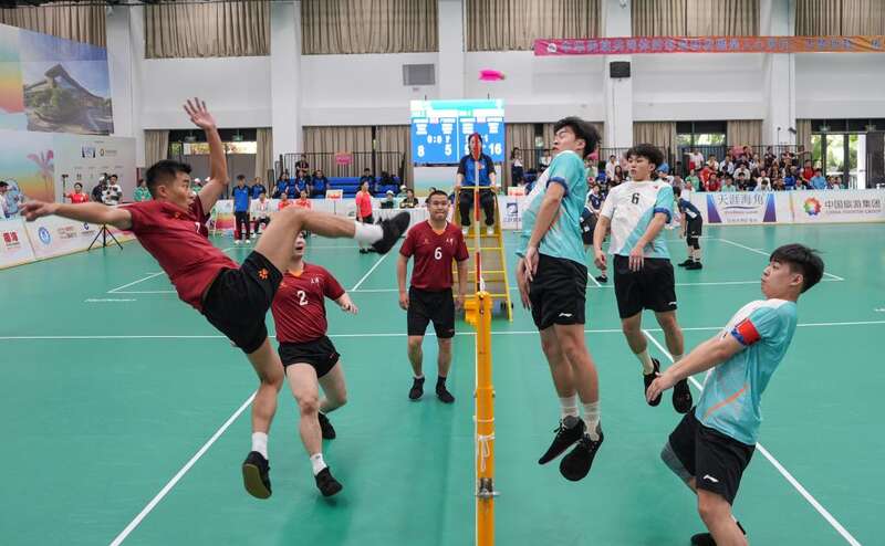 23日,第十二届全国少数民族传统体育运动会(以下简称“运动会”)毽球项目在海南三亚中瑞酒店管理职业学院开赛,斗志昂扬的西藏队与沉稳老练的香港队在男子三人小组赛中相遇。头球、倒钩球、扫堂腿、脚底扣球绝杀……双方你追我赶,观众看得目不转睛。