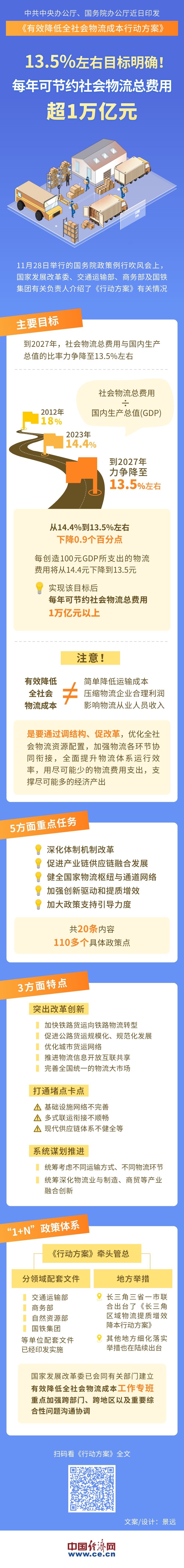 13.5%左右目标明确!每年可节约社会物流总费用超1万亿元