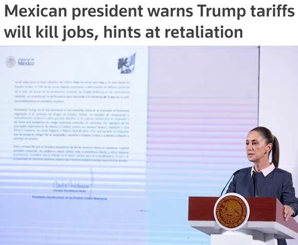 当地时间27日,墨西哥总统辛鲍姆在新闻发布会上表示,特朗普加征关税的计划将违反美方在2020年与加拿大、墨西哥共同签署的、用以替代《北美自贸协定》的《美墨加贸易协定》。墨西哥政府已经开始就可能的报复性手段展开讨论,以维护本国利益。