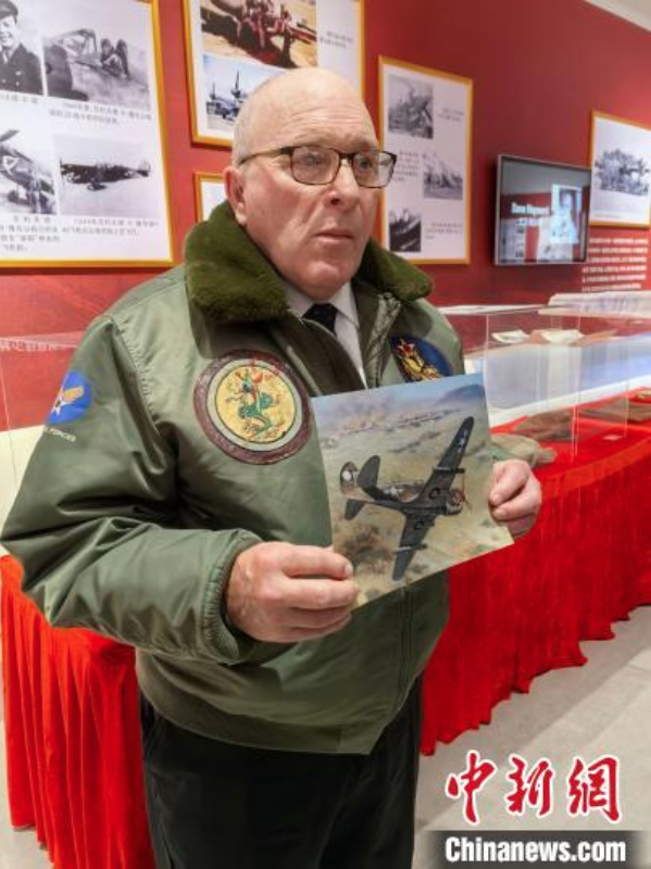 当日,美中航空遗产基金会副主席克利福德·雷·郎二世在一张照片前几度哽咽,照片记录了他父亲作为飞虎队第14航空队P40战斗机飞行员的执飞场景。“父亲来中国时不满20岁,帮助中国抗击侵略者期间执行了140次任务,其中2次被击落。每每想到此,我的情绪都难以平静。”