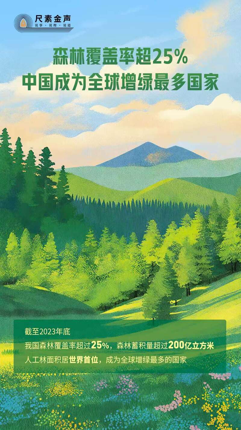最新数据显示,截至2023年底,我国森林覆盖率超过25%,森林蓄积量超过200亿立方米,人工林面积居世界首位,成为全球增绿最多的国家。