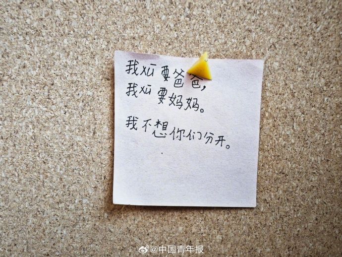 【“柔性力量”撑起“刚性屏障”】重庆市忠县人民法院翠屏人民法庭有一面特殊的背板,上面贴着许多张小纸条,大多是未成年的孩子们写给父母的。“祝爸爸身体健康平安。”一个有关赡养的案件有了结果后,孩子什么话也没说,留给父亲这张纸条。“今天很开心,又看见了妈妈。”一起家事案件调解期间,孩子时隔多日见到妈妈时写道。“妈妈,我想跟你回家。”一起离婚官司中,孩子的这张纸条让父母重归于好。