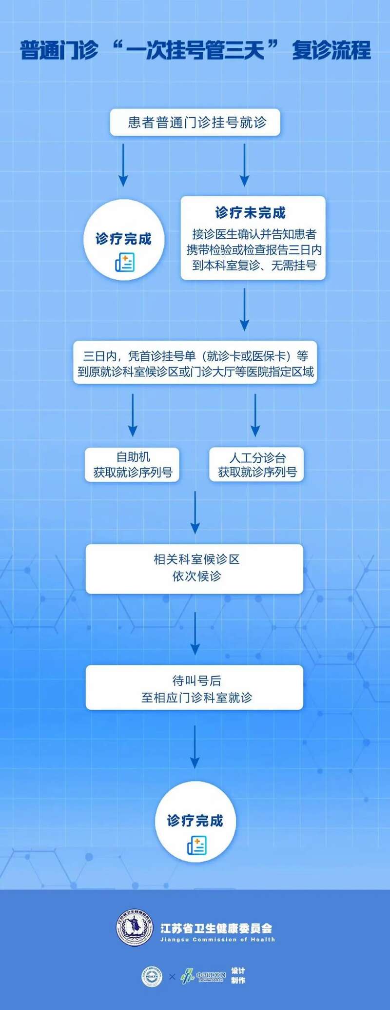 于是,“挂号一次管三天”就医政策来了,将一次挂号的有效期从24小时延长至72小时。患者当天没做完检查或没拿到报告的,三天内可携带报告结果到原科室复诊,无需再次挂号缴费。