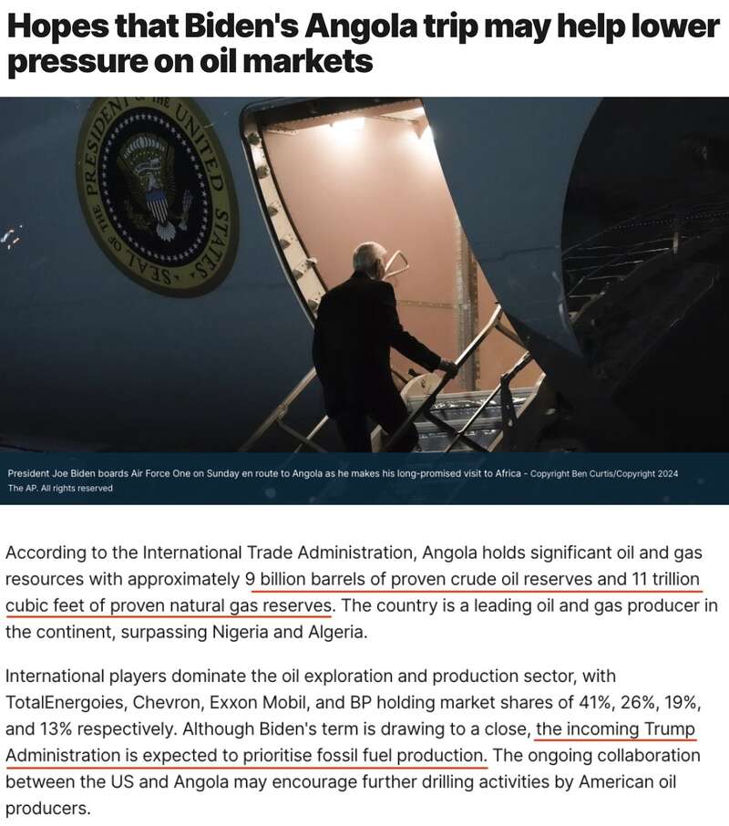 虽然拜登的任期即将结束,但预计即将上任的特朗普政府将优先考虑化石燃料生产。美国和安哥拉之间正在进行的合作可能会鼓励美国石油生产商进一步开展钻探活动。
