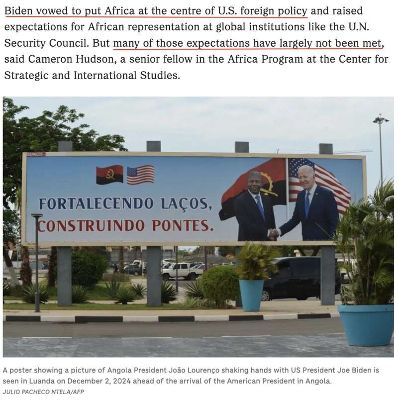 美国华盛顿特区乔治城大学外交学院副教授肯·奥帕罗认为,拜登在即将卸任时才抽出时间访问非洲地区,“从华盛顿外交政策内部人士的角度来看,这个时机反映了非洲在美国总体战略中的不重要性”。