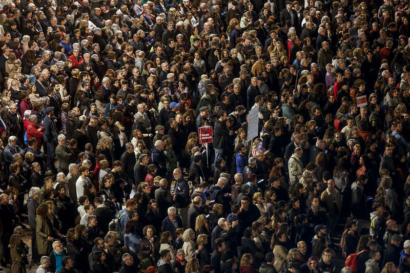 11月30日,西班牙瓦伦西亚,数万人在市中心举行示威,抗议巴伦西亚自治区主席卡洛斯·马松。这是针对洪灾管理不力问题的第二次示威。11月9日的首轮示威有约13万民众参与,此次示威的规模不亚于首轮。视觉中国供图