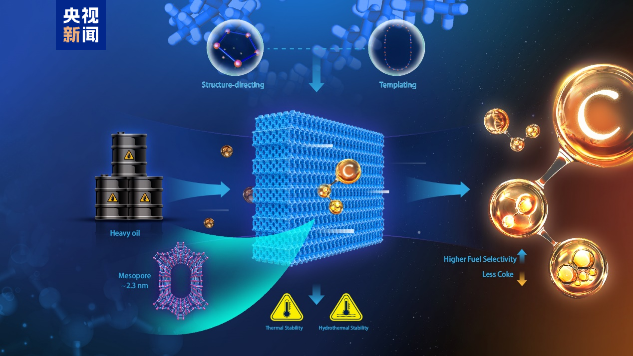 这种分子筛就像一个“超级筛子”,可以让化工生产过程更高效、更环保。比如,在石油加工过程中,该材料能更高效地将重油转化为汽油和柴油,转化率超过80%,远高于目前65%的平均水平;同时,使用该材料的转化方法还能减少焦炭、废气等副产物的产生,更加环保、低碳。再比如,在生物质处理领域,该材料可以将生物废料转化为柴油、酒精等具有应用价值的化学品。此外,该材料在精细化工和气体存储等领域也能为工业生产节能降耗。
