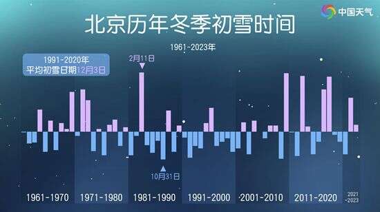 对于北方地区来说,水汽条件不足常常是雪花难以现身的关键。中国天气网气象分析师霍云怡表示,常年来看,除张家口、承德一些海拔较高的站点外,京津冀地区大多数站点的初雪时间一般在12月上中旬,而今年12月上旬,冷空气活动虽较常年活跃,但低空的水汽供给情况一般,因而暂时未能出现较大范围降雪。