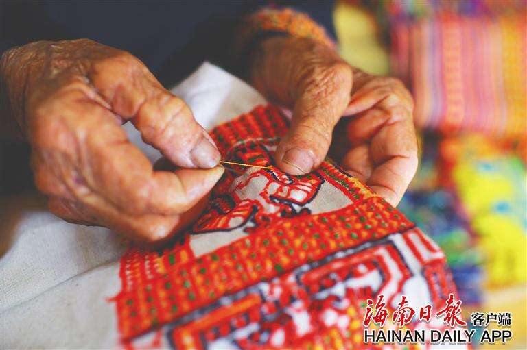 “黎锦光辉艳若云”,清代进士程秉钊在《琼州杂事诗》中的这句称赞,诠释了黎锦的图案颜色之美。