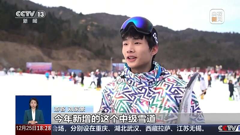 游客 刘家豪:今年的这个中级雪道,感觉难度更大,但同时也更好玩。