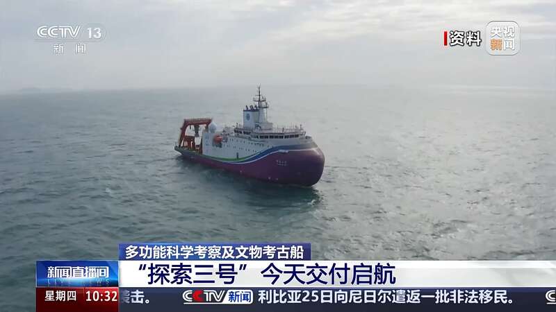 今天(26日),我国自主设计建造的深远海多功能科学考察及文物考古船“探索三号”,在广州南沙正式交付启航。
