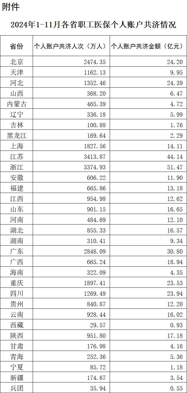 附件:2024年1-11月各省职工医保个人账户共济情况