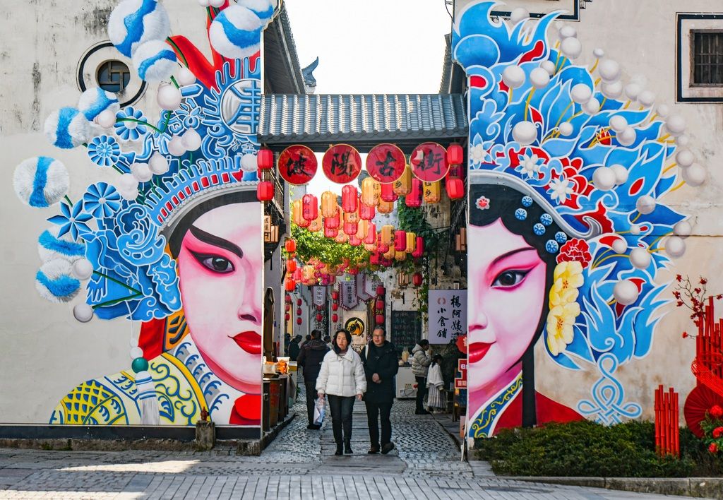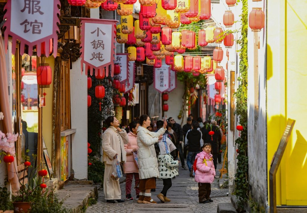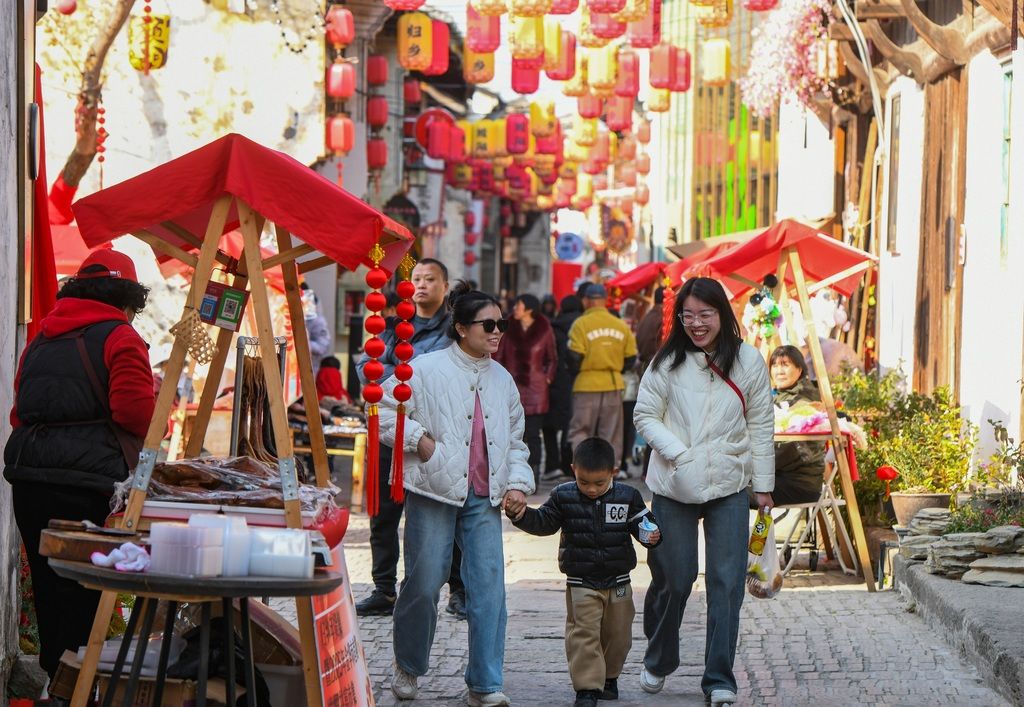 2024年12月28日,浙江省金华市金东区岭下镇坡阳古街上的游客。