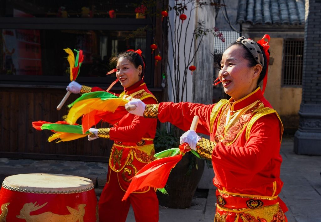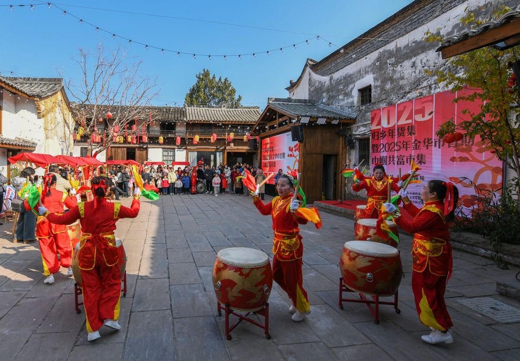 2024年12月28日,浙江省金华市金东区岭下镇坡阳古街的大鼓表演。