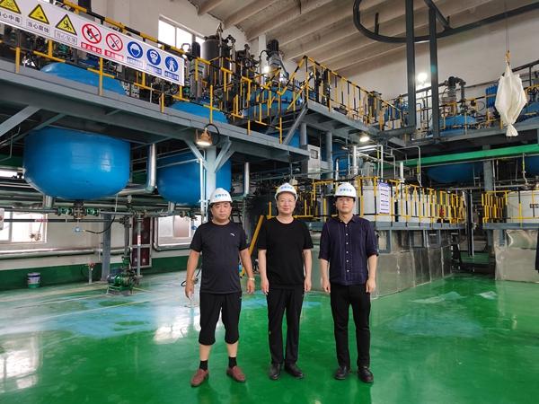 钱立军(左二)和团队成员在工厂开展实验。受访者供图