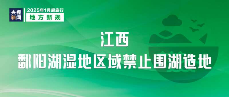 新修订的《江西省湿地保护条例》自2025年1月1日起施行。条例明确鄱阳湖湿地区域禁止围湖造地,禁止擅自修筑矮圩、拦汊筑坝、围堰挡水,已退田还湖的地域禁止新建居民点或者其他永久性建筑物、构筑物。