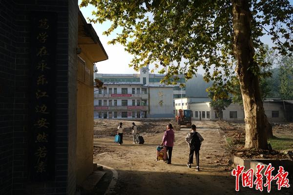 2024年8月31日,湖南资兴,开学日,州门司镇中学学生到学校集合,随后他们会乘车前往8公里外的资兴市二中入学。此时,洪灾已过去一个多月,校园内仍遍布泥土。因受到台风“格美”带来的强降雨影响,州门司镇中学受到洪水冲击,校内教学楼、宿舍楼、食堂等受损严重,是这场洪灾中受灾最严重的学校之一,学校无法在原址开学,所有师生一同转入资兴市二中。中青报·中青网记者 李强/摄