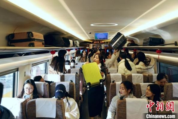 1月5日,旅客搭乘G885次复兴号列车从武汉前往香港。 中新社记者 张畅 摄