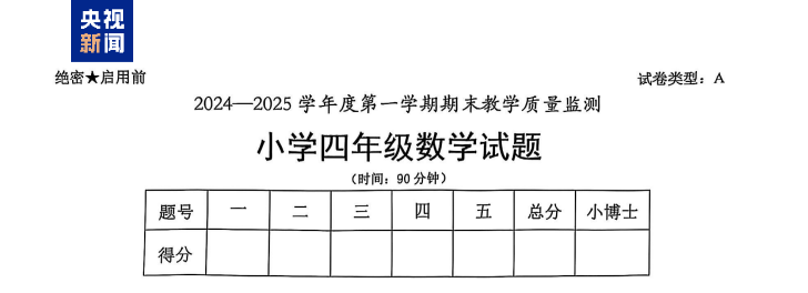 此次四年级期末数学试卷中