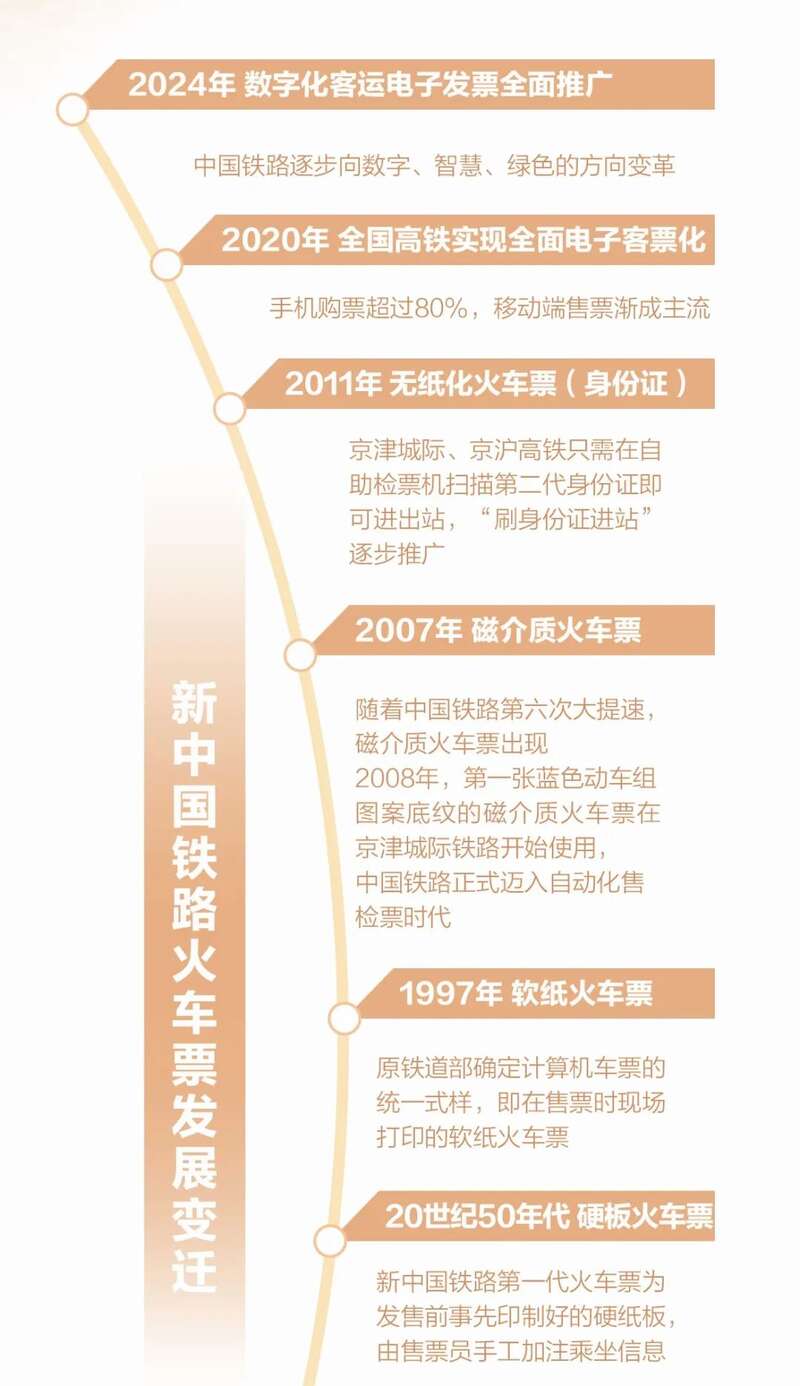 2024年11月1日,全国铁路客运推广使用全面数字化的电子发票,纸质火车票逐步退出历史舞台。从硬板火车票,到软纸火车票,再到磁介质火车票,火车票如同漫长岁月中的“信使”,成为无数人的时光印记。