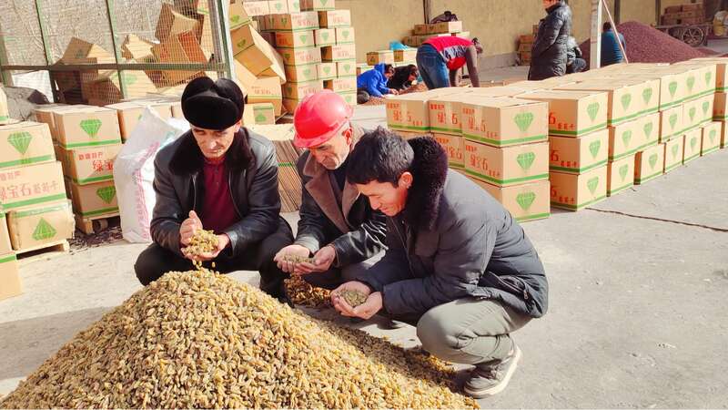 近日,在墨玉县喀瓦克乡的和田沙漠城农产品有限公司,呈现出一派繁忙而有序的景象。工人们正紧张地将一筐筐晶莹剔透、色泽诱人的葡萄干倒入筛选机中,经过精细的筛选、清洗、烘干等多道工序后,这些优质的葡萄干被源源不断地输送至生产线上。随后,工人通过称重、打包、装箱,将这些美味的葡萄干销往全国各地。
