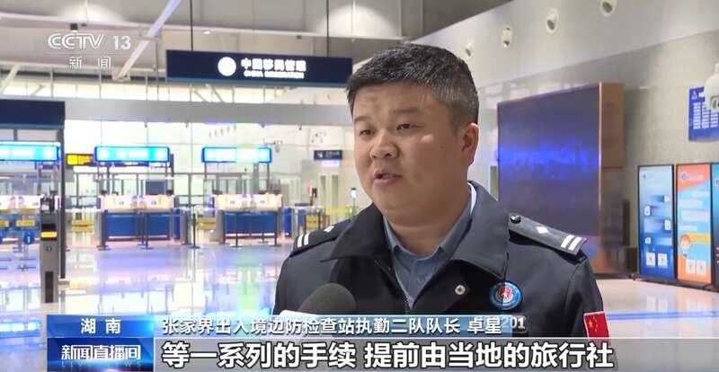 张家界出入境边防检查站执勤二队队长 卓星:我们会提前把需要填写的入境卡片等一系列的手续,提前由当地的旅行社,邮寄给外国的旅行社,让他们外国旅客出发之前,提前准备好入境的相关手续,提高他们的通关效率。