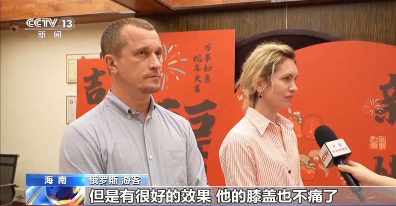 俄罗斯游客:经过咱们几天的针灸按摩,虽然说时间很短,1~2天,但是有很好的效果,他的膝盖也不痛了,然后颈椎或者腰椎都感到很放松,很缓解,非常喜欢。