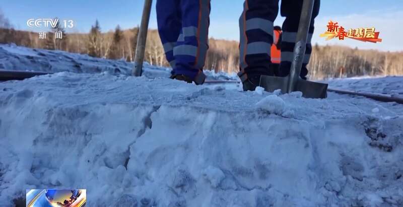 国铁哈尔滨局蒙克山维修工区班长 翟明朗:要下山还行,上山太困难了,山里有沟的地方我们看不到,雪都是平的,而有的时候一踩秃噜就掉雪沟里了。