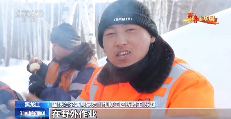 国铁哈尔滨局蒙克山维修工区线路工 张超:你要是平时在家吃有没这么香,在野外作业,大伙聚一起吃,那个味道就不一样了。