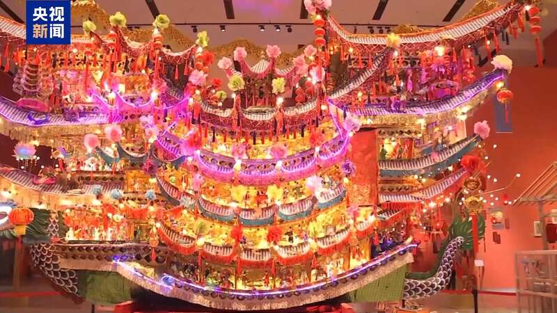 整个首饰龙灯制作工艺复杂,集木工、油彩、纸扎、龙灯、刻纸等工艺于一体。依靠内部的木制齿轮装置驱动,龙船能摇头摆尾,船上几百个形态各异的人偶也能动起来。