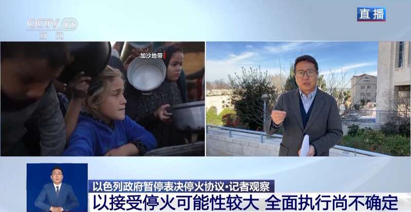 总台记者 赵兵:此外,以色列内部还有部分极右翼官员反对达成停火,这也给通过协议带来一定的不确定性。不过综合以色列媒体分析,目前来看,以色列接受停火协议仍然有比较大的可能。