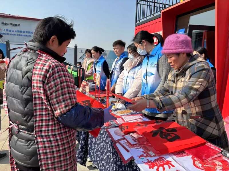 金山区在工地上提前举办送春联活动。金山区文明办提供
