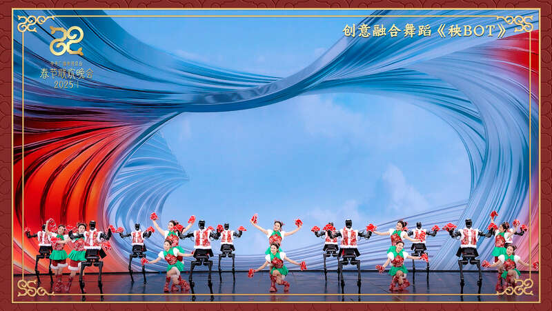 取材自经典故事《白蛇传》的小品《借伞》,以一把西湖绸伞巧妙串联京剧、粤剧、川剧、越剧,“白娘子”赵雅芝、“许仙”叶童惊喜献唱,让观众重温经典作品的恒久魅力。创意融合舞蹈《秧BOT》中,机器人与舞者共舞,手绢花翻飞旋转,为观众呈现一支别开生面的“赛博”秧歌。