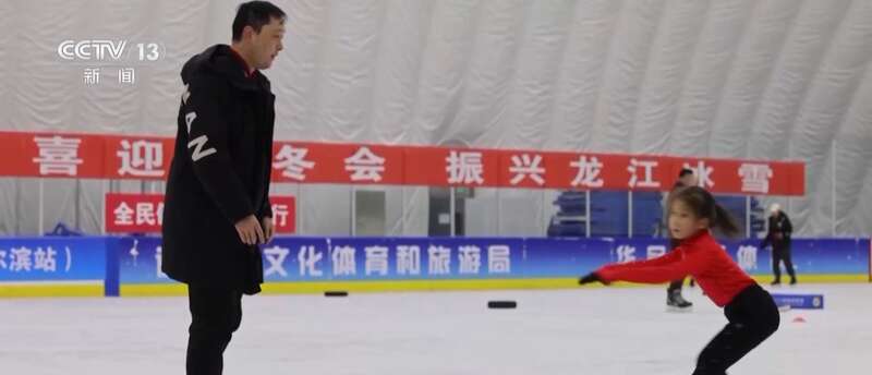 热闹的地方可不只在冰雪大世界,在一家冰上运动气膜馆,虽然已经是夜晚,但是馆内依旧人声鼎沸,在公益免费的时段,附近的居民群众都可以来到这里滑冰、打冰球。这里还会安排学校的冰雪运动培训课程,孩子们在教练的指导下认真学习滑冰技巧。同时,这里还经常举办夜间冰雪运动赛事,吸引众多冰雪运动爱好者参与。