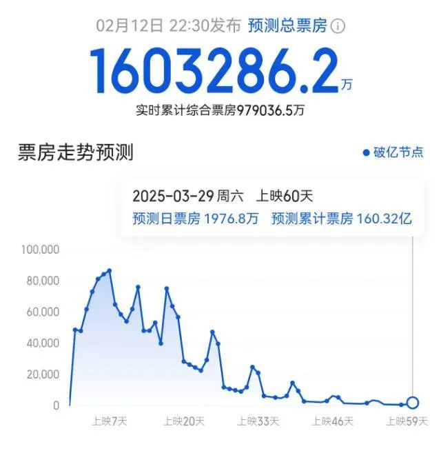 最新预测数据显示,《哪吒2》总票房或将超160.32亿(全球影史票房榜第5名)。