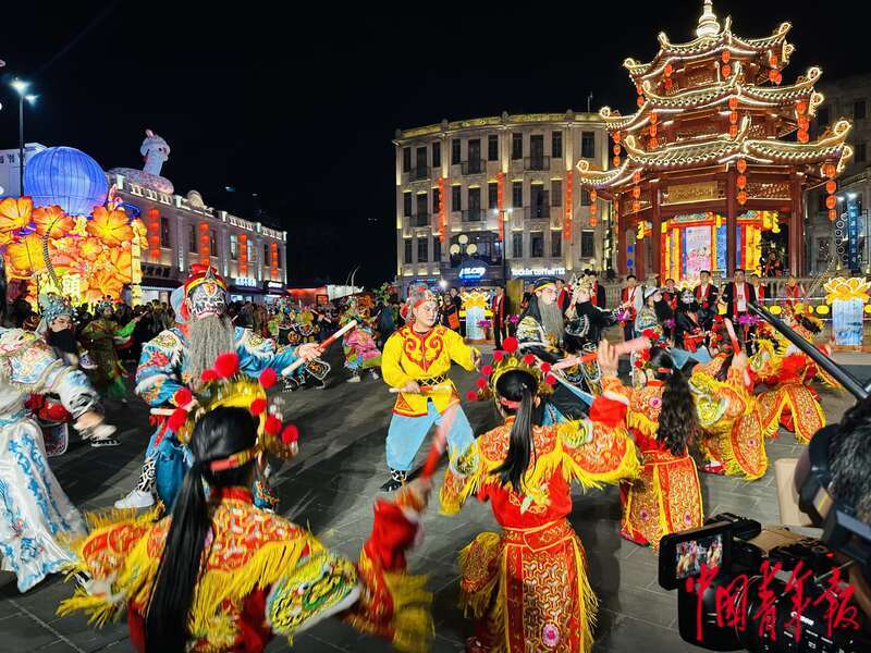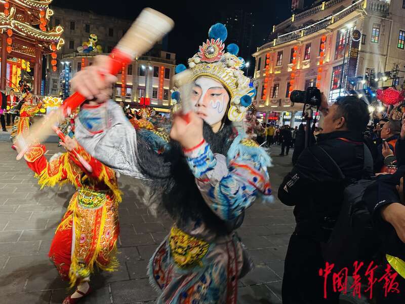 2月13日,广东汕头,春节期间在法国巴黎香榭丽舍大街表演的潮阳西门英歌队,带来精彩的中华战舞。当晚,2025汕头小公园国际元宵灯会文化嘉年华活动拉开序幕。嘉年华以异彩纷呈的花灯展示和独具特色的潮式展演,呈现“百年侨乡”汕头的文化魅力、发展新貌、深厚乡谊。活动将持续至3月9日。中青报·中青网记者 林洁/摄
