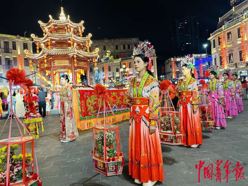 2月13日,广东汕头,传统民俗活动的花篮妹妹在巡游队伍中。中青报·中青网记者 林洁/摄