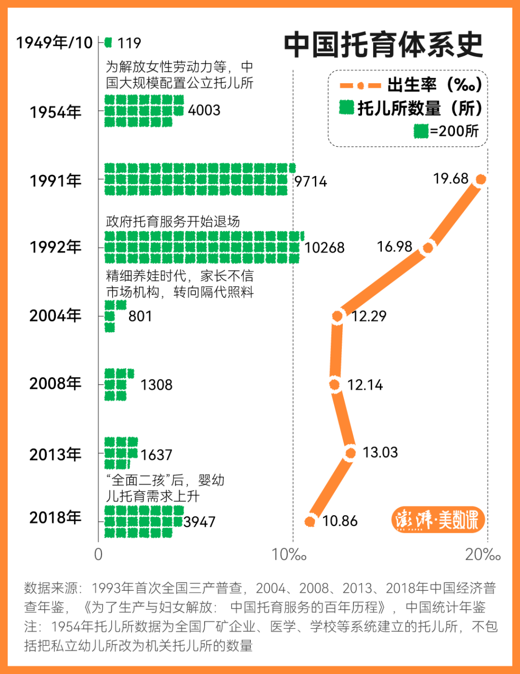 正因为这种种历史因素,托育领域从政府退场,转向家庭照料为主。