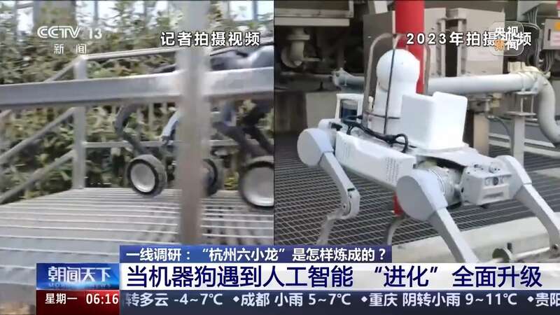 杭州云深处科技研发总监 周燕鑫:我们现在更多是基于AI的、训练的、更先进的AI算法,相当于有自身的学习能力,不像以前是非常固定的,基于一个场景或一种步态。它的运动能力得到了很大提升,以前不能去的地方或者不好去的地方,现在都能从容应对,对我们项目的交付和订单量都是有很大的帮助。