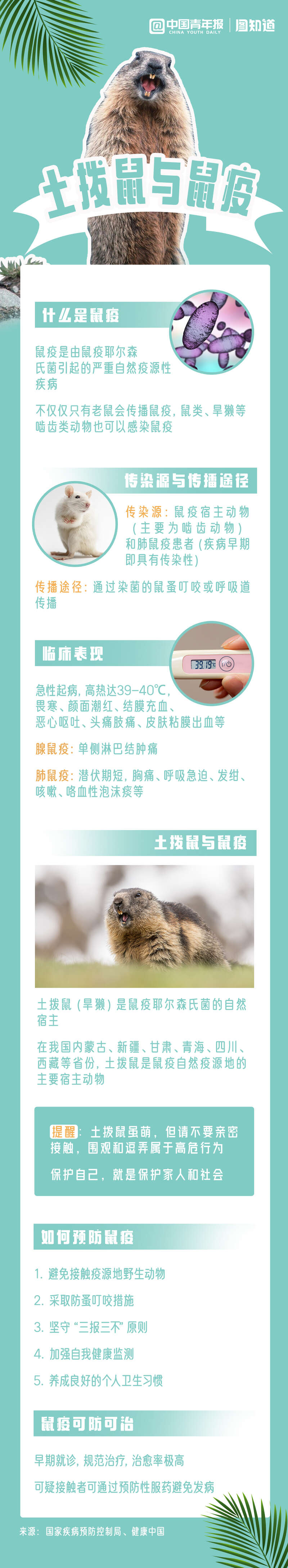 一图了解鼠疫相关小知识,揭秘土拨鼠与鼠疫的微妙关系。在这里提醒大家,土拨鼠虽萌,但请不要亲密接触,围观和逗弄属于高危行为。守护个人健康,就是守护家人和社会的安全。让我们一起防范鼠疫,共筑健康防线!
