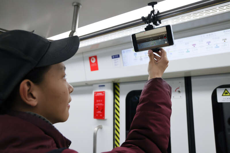 在新车上线后,一位地铁爱好者第一时间上车记录下这一时刻。中青在线见习记者 陈思阳/摄