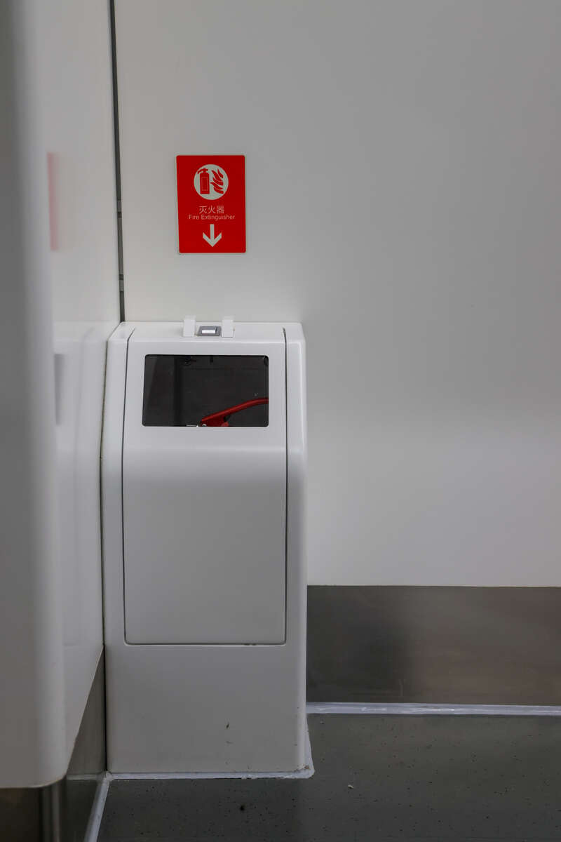 每节车厢内的角落处都设有灭火器等设施。中青在线见习记者 陈思阳/摄