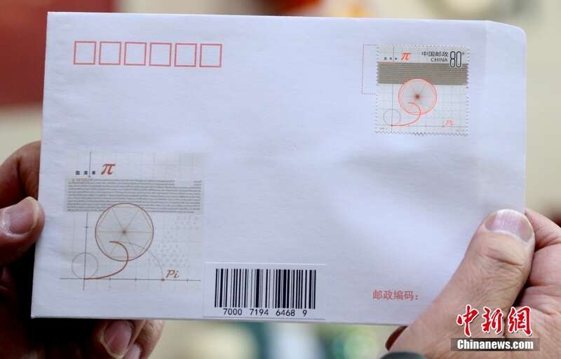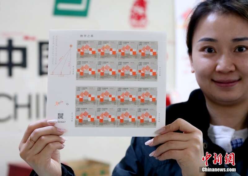 3月14日是国际数学日,《数学之美》特种邮票正式发行。该邮票一套四枚,邮票的图案名称分别为圆周率、勾股定理、欧拉公式、莫比乌斯带,全套邮票面值为4.70元人民币。图为青海西宁市民展示《数学之美》特种邮票。