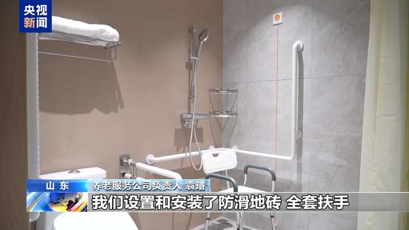 养老服务公司负责人 袁璿:在比较容易发生危险的卫生间区域,我们设置和安装了防滑地砖、全套扶手、按动式和拉绳式的紧急呼叫系统,通过不断丰富供给,提升我们的服务质量。