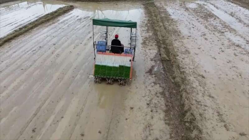 走进海南省海口市龙华区龙泉镇的新沟田洋,水稻插秧工作正高效推进。