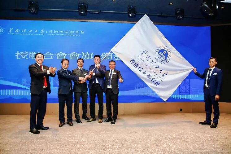 典礼现场,章熙春与中联办教科部调研员巩德亮,校友代表李永喜、刘毅翔、简伟文、李坚共同为华南理工大学香港校友联合会成立揭幕,并举行了会旗授予及理监事会成员聘书颁发仪式。