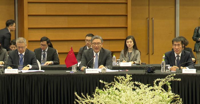 王文涛表示,中日韩地缘相近、文缘相通、商缘相连,三国经贸合作成果丰硕。受单边主义及保护主义蔓延等因素影响,世界经济下行压力加大。中日韩作为区域乃至全球重要经济体,应共同维护自由贸易和多边贸易体系,反对单边主义和保护主义,持续推进区域经济一体化,为世界经济繁荣发展注入强劲动力。中方坚定不移推动高质量发展,扩大高水平对外开放,愿与包括韩、日在内的世界各国分享发展机遇。